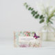 Professionell affärskort med en elegant magenta-fjäril för rosa med lila accents. Ett vitt ram med en guld färgad gräns läggs ovanpå ett schabbiskt kollage för vintage med rosa ros och andra dekorativa inslag. En chic gammaldags vibe.