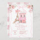 Rosa Bow Cafe Paris Eiffel Torn Inbjudningskort för möhippan