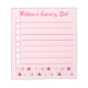 anteckningsblocket i checklistan i livsmedel innehåller originalillustrationer av en rad popup-pastejer av rosa frostat kaka. Anpassa med din information. Det finns också många fler illustrerade anteckningsblock från den här butiken. Denna design finns också tillgänglig för andra produkter. Ser du inte vad du är tittar för? Behöver du hjälp med anpassning? Kontakta Rebecca för att få något designat bara för dig.
