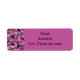 Dessa returetiketter har en modernt utformning i mitten av århundradet av överlappande trianglar som löper vågrätt i rosa camo färg på fält i lätt grått.