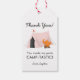 Födelsedagsfest för barn av kute-campingtema med rosa tält med en eldhärd bredvid. I texten står det: "Tack! Du gjorde min party-taktik!" Anpassa den här produkten genom att lägga till ditt barns namn vid grund. Underbar för party.