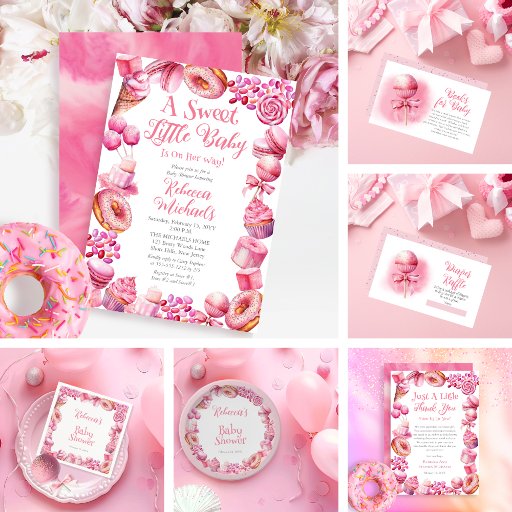 Vi vet att du inte kan vänta på att se din söta lilla baby och den här godiserade babyskaren firar dig och din lilla i all rosa ära! En utsökt bageribehandling och rosa ram omger dina duschdetaljer på ett så yummiskt sätt.
