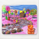 Det här är mitt Candyland-designhus i ett rosa-godislandskap med färgstarka påsar, gummibjörnar, käppar för socker, praliner och bomullsgodis på en chokladväg.