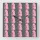 Rosa Cat Mönster på Grått Background Fyrkantig Klocka