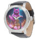 Rosa Cat Riding on Golden Bicycle Armbandsur