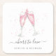 Festive och elegant underlägg för förlovningsfest eller bröllop har ett par krämglasögon i vattenfärg fyllda med rosa bubblor. Anpassa med två linjer anpassningsbar text nedanför, som visas med "bedragare till kärlek" och parets namn.