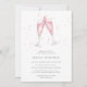 Festive och elegant inbjudningskort för möhippa har ett par krämglas i vattenfärg fyllda med rosa bubblor. Anpassa med duschdetaljer i chic grått-bokstäver.