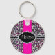 Rosa Cheetah Print Diamond Monogram Nyckelring
