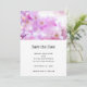 Spara datumkortet med ett vackert foto med rosa körsbärsblommar. Dreamy-bild med både ljus och gnistor.