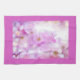 En kökshandduk med ett vackert foto med rosa blommar för körsbär. Dreamy-bild med både ljus och gnistor.