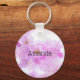 En nyckelkedja med ett vackert foto med rosa körsbärsblommar. Dreamy-bild med både ljus och gnistor.