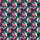 Rosa Cherry Blommar Paint Navy Blue Design Tyg