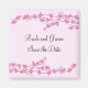 Elegant rosa cherry blommar grenar med en bakgrund av mjuk rosa för att framhäva bruden och brudgummens namn och bröllop datum. Anpassa efter behov.