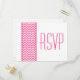 Chic och det moderna Postkort för svar på Chevron Gräns Bröllop med med ett enkelt chevron mönster gräns i rosa och vitt. Den här snyggten anger tonen för ett elegant bröllop. Enkel att anpassa, lägg bara till din bröllop-information i den text fält tillhandahåller. Klicka på Anpassa om du vill söka efter fler anpassningsalternativ.