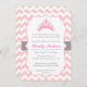 En söt liten prinsessa är på väg och firar med en speciellare dag för mamma att vara innan hennes flicka kommer. Börja med att bjuda in gästerna med den här eleganten, lektionen och chicens prinsessa. Prinsessans tiara är designad med hjärtformer i ställe och passande med lite delarare juvel. Bakgrunden är en söt rosa och vit schevron mönster. En inbjudan till royalty!