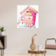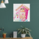 En kyckling utanför sin rosa kycklingkoop med blommor. Den här designen ser ut att vara verkligen på dessa Poster
