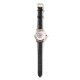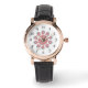 En vacker rosa cirkulär design på fyrkantig urtavla klocka för kvinnor. Svart läderarmband.