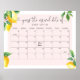 Rosa citron Gissa förfallodatum kalender Poster