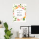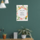 Välkommen gäster till din bröllopsfest med denna vackra affisch, med en ram av grönska, rosa blommor och citrusfrukter. Lägg till hedersgästens namn, datum för festen och anpassad välkomsttext med hjälp av de angivna fälten.