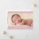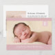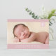 Detta vackra födelsemärke har ett klassiskt monogram och en traditionell utformning. På framsidan av födelseprospektet finns ett stort foto från vågrät baby. Ett vitt monogram inuti en söt rosa box täcker över fotot. Du kan anpassa färg i lådan och monogrammet. Du kan också flytta runt dem så att de passar med ditt eget foto. Ditt baby fullt namn, födelsedatum och födelsestatus visas också på kortets framsida, skrivet i vitt mot en rosa bakgrund. Födelsemeddelandets baksida innehåller ett andra foto och en mall där du kan skriva ett längre anpassningsbar till mottagarna.