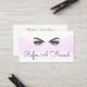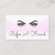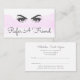Pastel rosa och vit vattenfärgsfärgton av moln med hänskjutningskort för företag med glamoröst ögon och lash och ett fantastiskt modernt handskrivet skript med stil typsnitt för din ögonfransservice. Lämplig för konstnärer som erbjuder lash hiss, färgtoning, mikrobladda och makeup. Lägg till ditt eget företag namn, eller ditt namn och erbjudande om hänskjutning på motsatt sida.