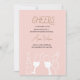 Fira bruden som ska vara med snyggten och roligt inbjudningskort för möhippan. Denna inbjudan ger en liten illustration av rosa cocktails och festliga detaljer, och den kommer säkert att ange tonen för ett minnesvärt firande. rosa drinkar, inbjudningskort för möhippan, illustrerad, vismisk, festlig, firande, brider som ska skänkas.