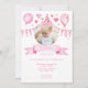 Färgfödelsemotiv i rosa coquette färg, inklusive en flyttbar födelsedagshatt och en vallmobuck som passar det foto du väljer. Du kan flytta runt inslag och skapa en unik layoutsammansättning för baby födelsedagsfest inbjudan!