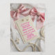 Omfamna den trendiga "Coquette"-estetiken med denna ultrakvinnliga och romantiska inbjudan. Designen presenterar en mjuk, handritad akvarellillustration av en rosa satinbands-slöja i par med ömtåliga vintagepärlor. En subtil krämtextur i bakgrunden ger en lyxig, "gammalt pengar"-pappersvarukänsla, perfekt för den moderna romantikern