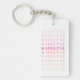 Den här nyckelkedjan för personlig har en modern typografisk design med rosa och koralltext. Anpassa texten med ditt namn eller annan text.