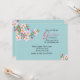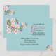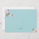 En perfekt inbjudan för en liten flickas fest. Små rosa cosmosblommor med en strö av varmt rosa knoppar och små blad pryder de två hörnen mot en blå bakgrund. (FP)