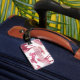 Res med stil med denna västerninspirerade rosa cowgirl-bagagelapp. Lappen har ett roligt mönster med hästar, cowboystövlar och hattar och är perfekt annorlunda. En genomtänkt och stilfull brudtärna-gåva för landsbygdens brudtärnor eller någon som älskar rustik charm med en feminin twist. Perfekt för möhippor, västerninspirerade bröllop och vardagsbruk!