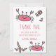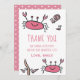 Cute Rosa Crab Sea Animals Birthday Tack för ditt kort. Den här designen levereras med söta rosa havsdjur teckning och tack för texten. Lägg till ditt namn och din text och gör en söt födelsedagskalas tack för en flickas födelsedagsfest.