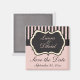 Denna Rosa, Cream och Charcol Grått Stripe spara datum magneter överensstämmer med den bröllopsinbjudan som visas nedan. Texten är allt anpassade.