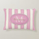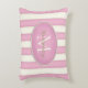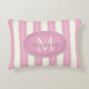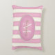 Denna eleganta kudde med breda rosa och crèmegula ränder visar ditt monogram och namn i en oval ram.