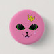 Den här rundade rosan har en tecknad katt ansikte med ett litet guld krona på huvudet. Katten har stor grönt ögon, liten rosa näsa och ett litet rosa hjärta på kinden. Bakgrunden är en solid rosa färg.