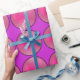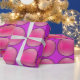 Bild av rosa kristaller boll med vita skuggor och smalans svarta kontur för kristallens boll. Bakgrunden är lila/rosa.