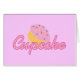 Dessa söta grafiktexter och andra föremål har en bild av en rosa-frostig cuptårta med sprinkler och retrotext.