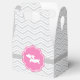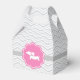 Skicka dina gäster hem med lite extra svans och svaj! Denna bedårande presentask har en söt rosa dachshund i en ram av en taggig medaljong på en chic grå chevronbakgrund. Stilfull men ändå lekfull, den är perfekt för att förvara små godsaker, leksaker eller partfavoriter.