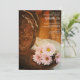 Inbjudan gäster till ett party före giftermål med charmerande och rustiska Rosa Daisy och Cowboybooter Westernare Inbjudningskort för möhippan. Den här avslappnaden, som ändå är klassad anpassningsbar ranch stil Möhippa Inbjudan, har ett digitalt utökat foto av blommigt av bruna cowboyskor, rosa daisy-blommar, vita möhippor och avvanda bruna lingor.