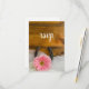 Anpassa det Westerna Bröllop OSA-kortet för rustic chic Rosa Daisy och Horseshoe Land med det specifika giftermål-svarsdatumet. De här charmerande anpassningsbarna Rustic chic ranch stil r.s.v.p.-responskorten har ett fyrkantsfotografi av en ljus rosa blommar av blommor av daisy, vitpärlhalshalsband och rostbildande hästskon med vit möhippa och en vall av barrträ.