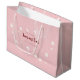 En presentpåse för personlig för en flicka i alla åldrar som är giftig och söt: 1:a födelsedag, 3:e födelsedag, 16:e födelsedag, 21:e födelsedag eller 50:e födelsedag! En dammig rosa texturerad bakgrund med ett blommönster: hand plockade daisy sprinklade på. Texten namn är skrivet i mörk rosa med ett modernt handskript i stil. Mall för datum, ålder och namn.