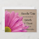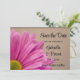 Meddela din söt rosa blomma giftermål-ceremoni och mottagningstema med Daisyn elegant Rosa i Tan Bröllop spara datum-tillkännagivandet. Den här söta och anpassningsbar blommiga -behållan innehåller en digitalt målad blommigt av en rosa daisy-blomma blommar med en brant bakgrund. Finns som en utskriven inbjudan att skicka eller som en digital nedladdning för att enkelt kunna dela digitalt online. Unik ingång eller idé för en trädgårdsevenemang i party.
