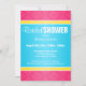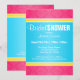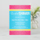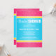 Ljus och färglös sommarfärgad Inbjudningskort för möhippa designad med fuchsia rosa damask mönster, akvblått övertoningsorgan för färgad och 2 gulters övertoningar av färgad rand. Din Shower-information skrivs ut som vit anpassningsbar över akvblått.