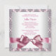 Elegant silvergrå och rosa damask med söt rosa rosett bebis flickas foto dop- och dopinvitation. Denna eleganta rosa damask foto dop- och dopinvitation kan enkelt anpassas för ditt evenemang genom att lägga till din bild, evenemangsinformation, typsnitt, teckenstorlek och färg samt formulering. Observera - detta är en tryckt design utan faktiska ädelstenar, rosetter, upphöjda, präglade eller tillagda delar eller detaljer.