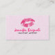 Elegant - enkel makeup-mall för visitkort för konstnärer med lätt pastellförgrening för rosa blommigt - bakgrund och rosa läppar. Fullständig mall för visitkort för anpassade