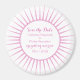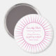 Sofistikerad och elegant Deco Retro Spara datum magneter i magenta som har en cirkelformad dekretativ solsprängningsdesign. Enkel att anpassa, lägg bara till din bröllop-information i den text fält tillhandahåller. Klicka på Anpassa om du vill söka efter fler anpassningsalternativ.