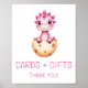 Rosa Dinosaur-kort och presentkort för babyskor Poster