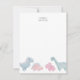 Sött barnbrevpapper notkort med handritad illustration av rosa pastelldinosaurier.