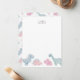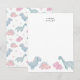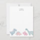 Söt barnbrevkort med handritad illustration av rosa pastelldinosaurier.