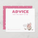 Söta dinosaurie-tema baby shower råd kort med handillustrerad konst av rosa triceratops som kläcks ur ett ägg. Denna rosa tema design är bra för en flickas shower.